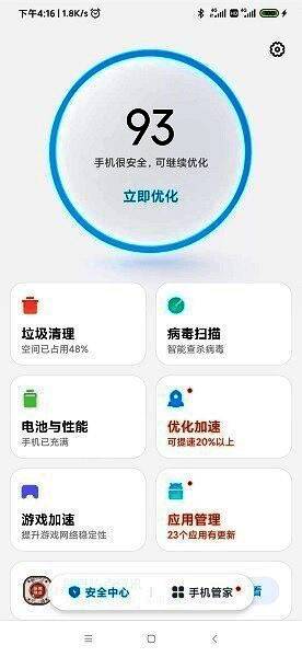 总体来看,“小米手机管家app绿色版”不仅功能全面,而且体积小巧,运行稳定,几乎不占额外内存。无论是日常清理还是深度优化,它都能轻松胜任,是提升手机性能的理想选择。对于追求高效与安全的用户而言,这款软件无疑是一个值得长期使用的贴心助手。