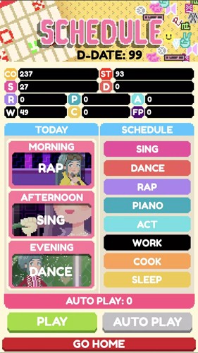 游戏首创「偶像+经纪人」双身份系统:作为偶像,需通过声乐、舞蹈、表现力等模块化训练提升能力值;作为经纪人,则要统筹资源、匹配商演、定制人设,实现角色商业价值跃升。特别设计的亲密度机制贯穿全剧情——每日互动、浪漫事件触发均可提升与主角羁绊,亲密度达S级后将解锁限定舞台特效与幕后花絮CG,深度强化情感代入感。