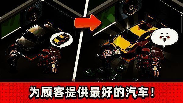 玩家在游戏中需要逐步修建修理车间、车辆展台,并合理安排店内布局,确保每辆车都有合适的摆放位置。修好后即可上架销售,接待顾客时通过点击其头上的气泡完成订单确认、收款、交付等一系列操作。随着图鉴收集完成度的提升,还可解锁丰厚礼包奖励,进一步推动店铺扩张。
