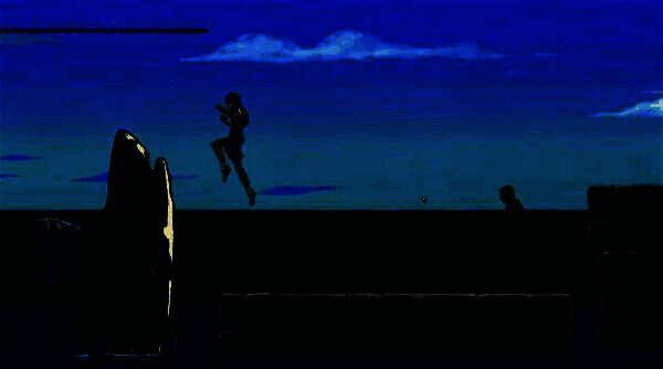 进入游戏后,玩家可通过左右箭头控制移动方向,向上箭头完成跳跃动作,整体操作方式简洁直观,新手也能快速上手。但在游戏过程中,黑衣人的追捕会逐渐加剧,敌人数量随距离增加而增多,玩家需保持高度专注才能顺利通关。一旦被敌人追上,角色将损失一条生命,屏幕上方实时显示剩余生命值。若生命耗尽或不慎掉入海中,则当前关卡挑战失败。