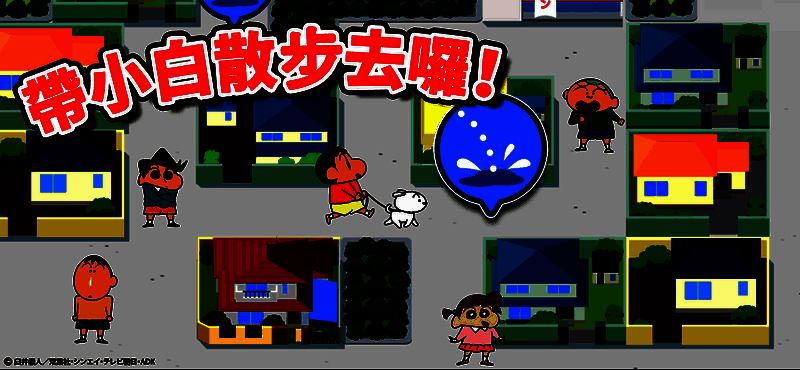 游戏采用清新可爱的卡通画风呈现,色彩明亮、场景布置细腻,整体视觉效果令人赏心悦目。同时,游戏中收录了《蜡笔小新》动画中的众多经典角色,包括小新、风间、妮妮等,每位角色都拥有独特的技能设定和个性配音,极大增强了代入感与互动乐趣。
