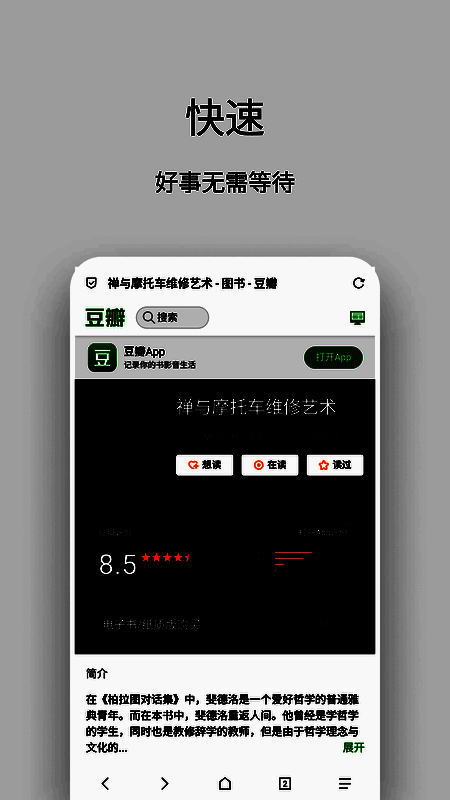 作为一款良心浏览器,Via不收集用户数据,仅申请必要权限;内置高性能webkit内核,带来接近原生的网页加载速度;提供丰富的个性化设置选项,真正实现专属于你的浏览器体验;毫秒级启动和极速搜索响应,让每一次操作都高效便捷。