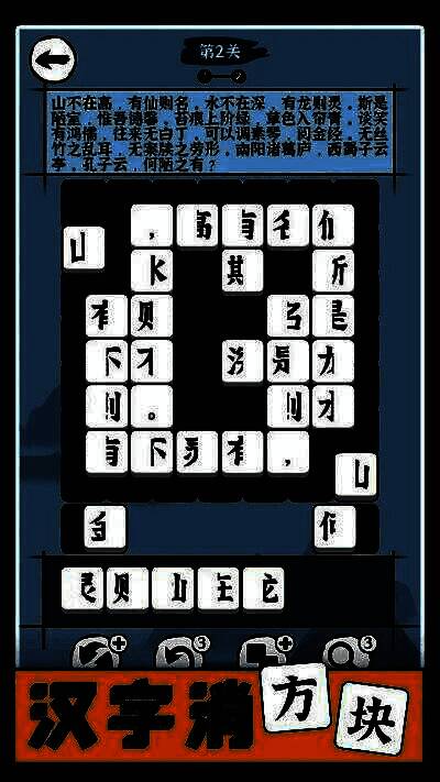 《汉字消方块》是一款将汉字学习与消除玩法巧妙结合的休闲手游,为玩家打造了一个充满知识性与趣味性的游戏世界。通过点击或滑动相同汉字进行消除的操作方式简单易上手,同时融入了丰富的任务系统和关卡挑战,让玩家在轻松娱乐的同时提升汉字认知能力。无论是学生群体还是汉字爱好者,都能在这款游戏中找到乐趣与价值。