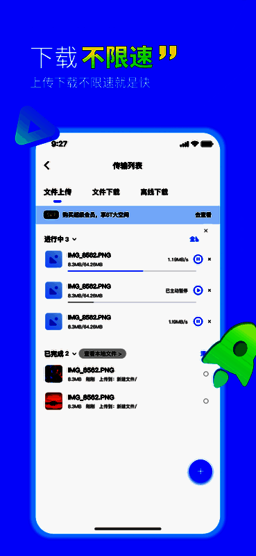 得益于下一代云存储技术与CDN加速服务的支持,小飞机网盘实现了上传和下载过程中的毫秒级响应速度。无论你是需要快速获取大文件还是分享资源,这款工具都能确保数据传输不卡顿,真正实现信息的即时获取与传播。