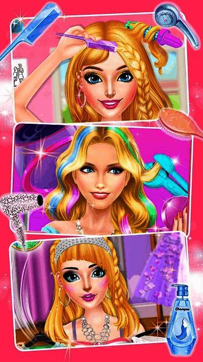 游戏提供多种核心玩法模式,包括接待各式公主顾客并完成她们的专属美发需求,从基础护理到最终造型一应俱全;玩家还可自由搭配发型、颜色与装饰,尽情发挥创造力打造个性十足的公主形象。通过完成任务获取金币,还能不断升级沙龙设施与环境,吸引更多高端客户光临。此外,定期举办的美发大赛更是考验设计能力的好机会,参与比拼不仅能赢取限定奖励,还能与其他玩家交流灵感,提升自己的审美与技艺。