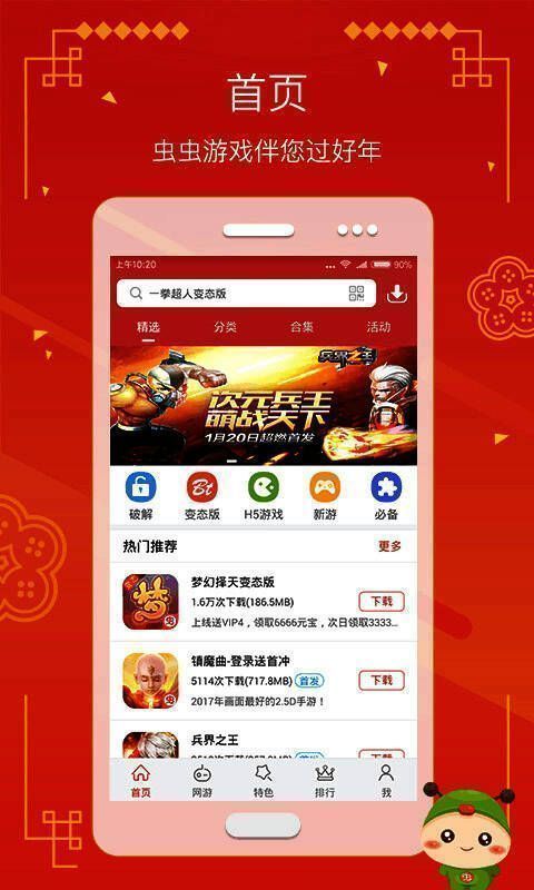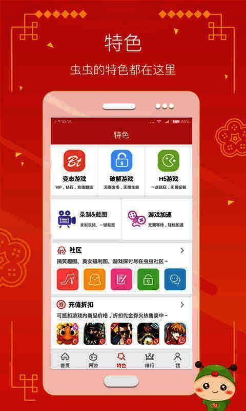 虫虫助手2025官网正版是国内有名的手游盒子,海量的手游一应俱全。正版、bt游戏、h5游戏等,推荐每日排行榜。社区交流帖子友好交流,超多独家专属福利礼包在线赠送。软件为玩家提供破解单机、免除谷歌认证游戏、好游戏快爆料、新游戏速配、免费游戏不用网络、修改版手机网游。作为精品手游平台,只为热爱游戏的你提供超好玩的游戏。感兴趣的朋友不要错过下载。