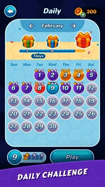 《六边形拼图大师》提供了多种玩法模式,满足不同类型玩家的需求。经典模式中,玩家可以无限制地进行拼图挑战,通过不断填充和消除六边形来争取更高分数,享受持久的逻辑乐趣;限时挑战则考验玩家的反应速度与决策能力,在有限时间内完成消除任务,挑战自我极限;每日任务帮助玩家每日上线都有明确目标,完成挑战即可获取丰厚奖励;智慧闯关模式则设置了特定拼图形状与目标要求,需要玩家动脑思考,合理布局完成任务。