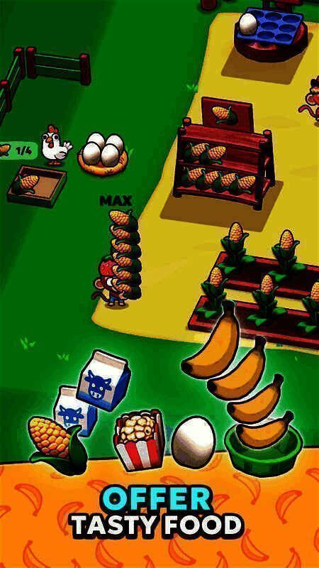 《猴子超市》是一款充满趣味与挑战的模拟经营类手游,游戏以可爱的猴子为主角,打造了一个别具一格的超市经营世界。玩家将扮演一只勤劳的猴子企业家,负责管理并扩展属于自己的超市帝国。游戏核心目标是帮助猴子发展业务,使其超市繁荣昌盛,成为附近动物们的首选购物天堂。游戏机制融合了模拟经营、策略规划以及时间管理等多种元素,玩法丰富且极具沉浸感。玩家需要种植香蕉、菠萝、椰子等作物,为货架提供新鲜货源,满足各类顾客的需求。