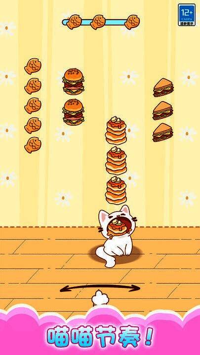 虽然仅需滑动屏幕即可控制小猫移动,但想要获得高分却需要极佳的节奏感与手眼协调能力。美食掉落的频率和节奏会随着音乐变化而加快或变复杂,尤其在高潮段落更是考验玩家的反应速度。此外,游戏中还设有加速、护盾、扩大接取范围等道具,合理使用能助你轻松突破极限关卡,冲击排行榜顶端。