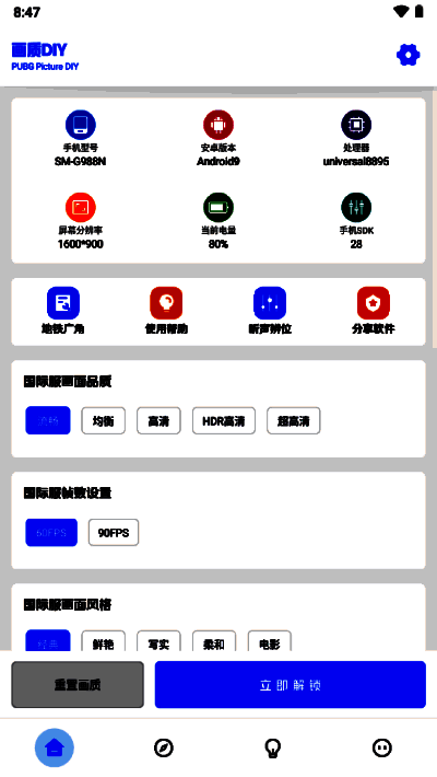 虽然软件宣传中提及“PUBG官方正版”,但实际上其主要适配对象为《和平精英》及PUBG Mobile等战术竞技类手游。针对这类游戏对视野清晰度和操作延迟的高要求,yzl工具箱提供了多套预设画质方案,支持同时修改帧率、渲染精度与抗锯齿等级,全面优化游戏运行表现。无论是在高端旗舰机还是老旧机型上,都能实现更稳定、更清晰的游戏画面输出。