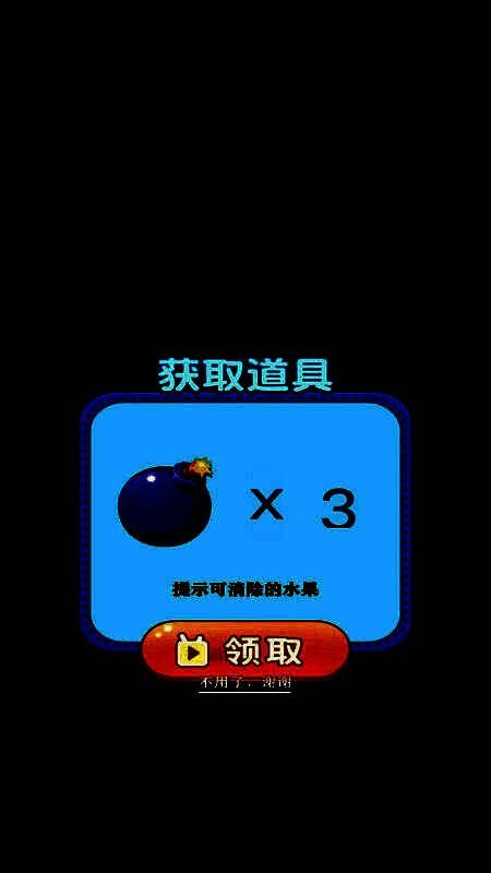 为帮助玩家应对高难度关卡,游戏内置了丰富的辅助道具系统。例如“提示”功能可自动高亮一组可消除的水果;“重排”能打乱当前布局,创造新的匹配机会;“炸弹”则可直接清除某个难以处理的水果。这些道具可通过关卡奖励或任务获取,合理使用不仅能突破瓶颈,还能显著提升通关效率,让挑战更具弹性与乐趣。