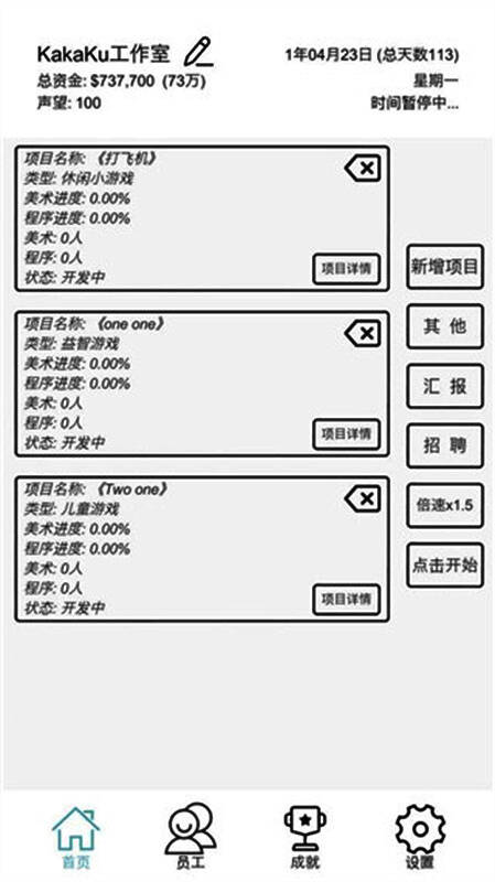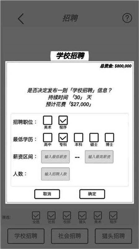 人才是成功的关键。玩家可通过招聘系统吸纳拥有不同专长的开发者——有人擅长快速编码(速度),有人精于技术攻坚(技术),也有人创意无限(创意)。合理分配岗位与任务,平衡团队能力,是提升项目效率、缩短开发周期的核心策略。