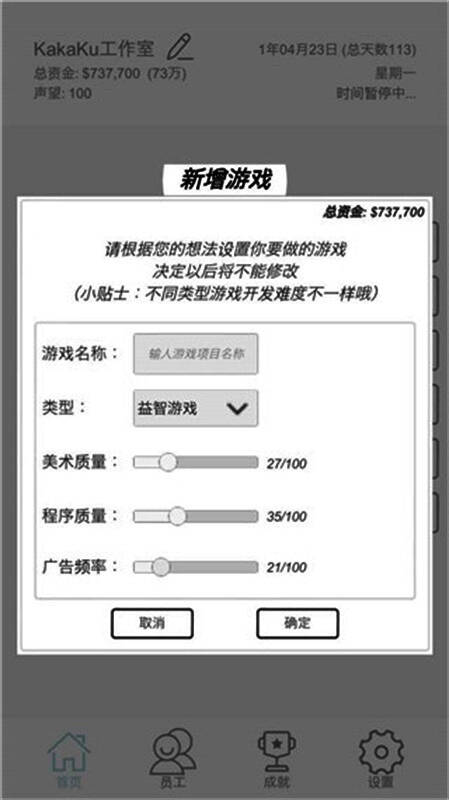 从游戏类型选择、核心玩法设定,到美术风格定位、程序实现与后期测试,每一个环节都由玩家亲自参与。你可以决定开发一款独立艺术游戏还是商业爆款,追求极致品质或快速变现,每一次选择都将深刻影响最终产品的市场表现。