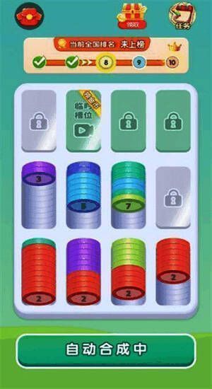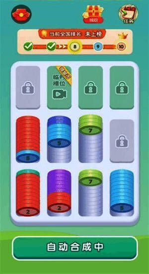 玩法上,《风铃解压屋》采用直观的合成消除机制:将相同颜色的金币拖入同一格子,当格子填满后即可合成更高等级的金币并获得奖励。无法继续移动则挑战失败,考验玩家的预判与规划能力。随着等级提升,还可解锁红包奖励,参与更高难度挑战,边玩边赚,增强游戏动力。即使新手也能快速上手,享受轻松解压的乐趣。