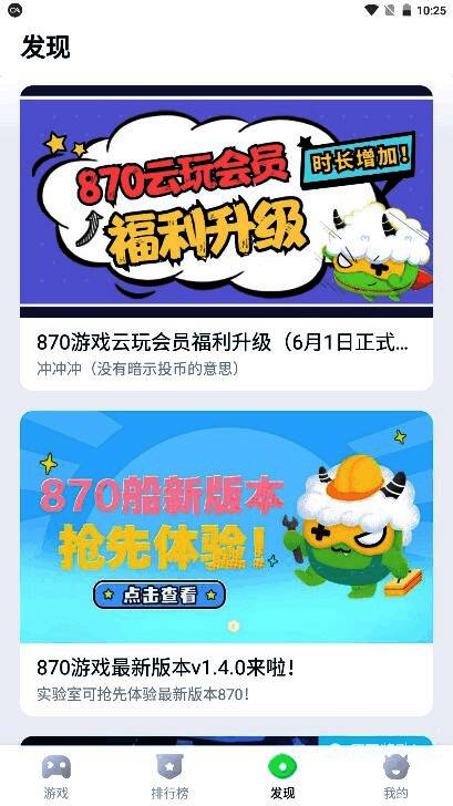 在移动游戏日益普及的今天,一款集资源丰富、体验流畅、互动性强于一体的综合游戏平台显得尤为重要。870游戏盒子最新免费版应运而生,专为安卓用户打造,汇聚海量精品游戏,涵盖角色扮演、动作冒险、休闲益智、战略竞技等多种类型,满足不同玩家的多样化需求。凭借其强大的云游戏技术支持,用户无需下载即可即点即玩,极大节省手机存储空间,同时降低对设备性能的依赖,让更多中低端机型也能畅享高品质游戏体验。