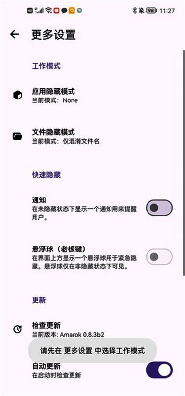 Amarok的最大特色在于其便捷的一键隐藏机制,只需轻轻一点即可将敏感内容迅速隐藏。它支持高速处理大文件,同时提供多种隐藏模式,包括Root、Shizuku以及DSM等方案,适配不同系统版本与设备类型。此外,它还配备了管理员模式,可通过连接电脑使用设备管理器激活类似“冰箱”或“小暗室”的深度隐藏功能。