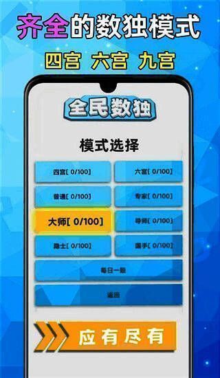 《全民数独》免费版是一款专为逻辑爱好者打造的烧脑益智手游,融合经典规则与现代设计,带来极致思维挑战。游戏采用标准9宫格布局,严格遵循“每行、每列、每宫数字不重复”的核心规则,同时新增4宫、6宫等简化模式,降低入门门槛,让新手也能快速上手。全版本共设5大难度等级,涵盖220个精心设计关卡,搭配线性递增的题库难度,逐步提升玩家解题能力。内置直观教学系统,30秒即可掌握基础玩法,助力用户从零进阶为数独高手。