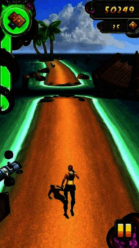 《神庙逃亡2》旧版在核心玩法上延续“无限跑酷”模式,但加入了更多动态地形与交互元素。玩家需通过滑动、跳跃、下蹲、转向等操作,灵活应对突如其来的障碍与岔路。新增的滑索轨道、矿车关卡和悬崖路段大幅提升了操作多样性与反应要求。例如,在滑索场景中需精准控制左右移动以避开空中障碍;矿车关卡则带来高速冲刺的压迫感,考验玩家手眼协调能力。此外,游戏保留了经典的金币收集系统,可用于购买能量道具或解锁新角色,增强续航能力与策略深度。