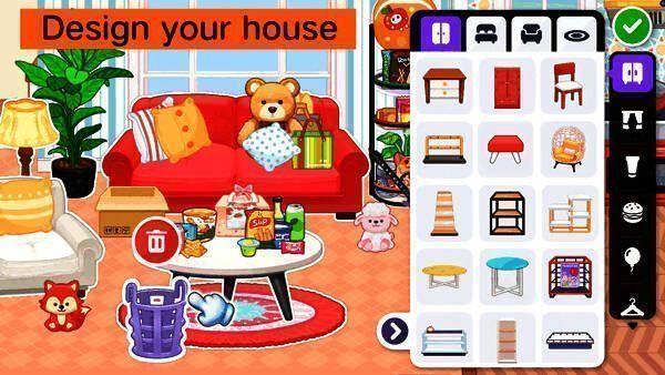游戏采用清新可爱的2D动画风格,整体视觉柔和舒适,营造出温暖治愈的氛围。每个场景与角色均经过精细打磨,虽用笔简练却生动传神。从家具纹理到角色表情,细节刻画到位,带来沉浸式感官体验。