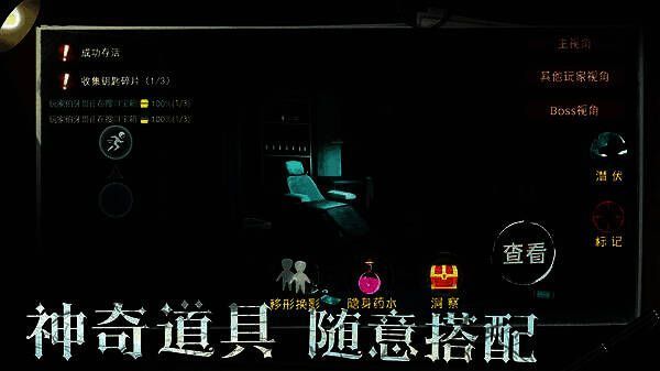 非对称对抗全面升级:1名追捕者(恐怖BOSS)对阵4名躲藏者,追捕者拥有全图感知与场景破坏能力,可打碎花瓶触发警报暴露藏身点;躲藏者则能钻入衣柜、伪装成道具,甚至利用假人迷惑对手。每局随机分配技能,如“隐身3秒”“透视10秒”,策略组合千变万化,杜绝套路化对局。