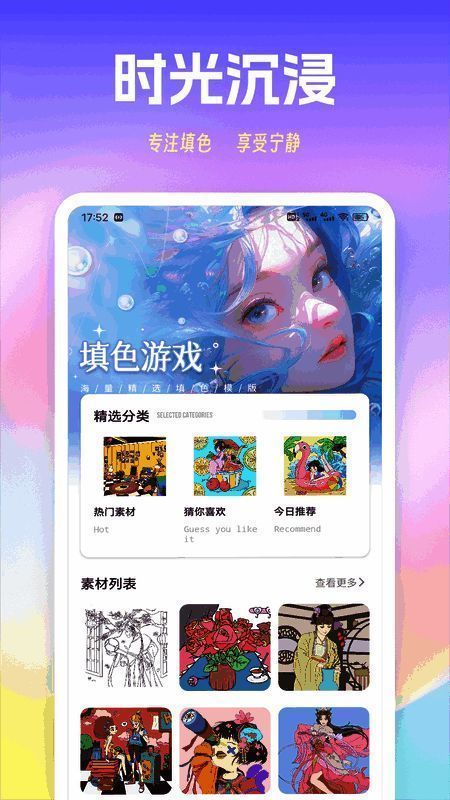 应用内置海量高清图库,涵盖国风汉服、萌系二次元、可爱动物、梦幻风景等多种主题,每周更新超50张新图,持续激发创作热情。所有图片均支持缩放查看细节,确保每一笔涂抹精准到位,带来沉浸式绘画享受。
