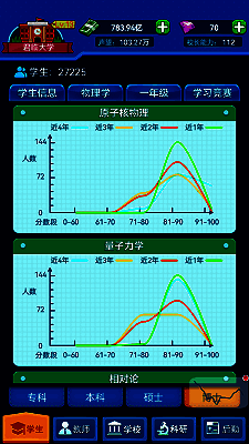 游戏内置多维度数据分析系统,实时生成学生成绩分布、就业率趋势、科研产出、校园热度等可视化图表。管理层可通过数据面板精准调整政策方向,比如发现某专业就业低迷时及时优化课程设置,或在招生旺季加大宣传投入。数据驱动决策,让每一次改革都有据可依。