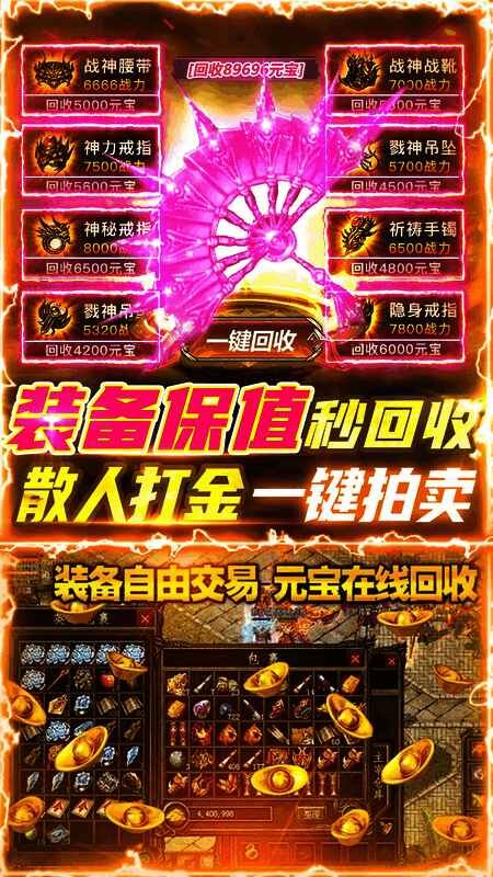 在《雷神战纪》中,野外BOSS不再是高不可攀的存在。凭借满攻速与高爆发组合,单人也可挑战高难度首领,成功击杀后必掉稀有材料、神装碎片及元宝奖励。掉落装备支持自由交易,闲置神兵可兑换海量元宝,反哺账号成长,形成“刷怪→爆装→变现→强化”的正向循环。此外,自动回收系统智能筛选垃圾物品,背包永不溢出,长时间挂机刷图也无需手动清理,极大提升刷金效率。