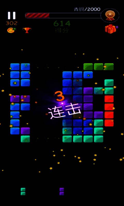 游戏核心采用“三消+方块生成”双机制设计,玩家通过点击相连同色方块完成消除,成功后可召唤特殊俄罗斯方块用于清屏或连锁爆发。随着关卡推进,障碍类型和布局策略不断升级,考验反应力与预判能力。此外,每局胜利均可积累成长经验,解锁更高阶挑战内容,带来持续进阶的成就感。