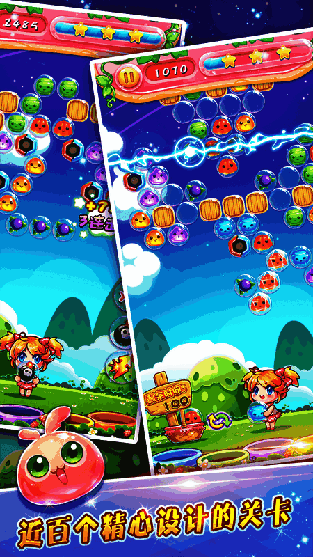《萌宠泡泡龙 红包版》是一款融合轻松益智与社交竞技的休闲消除手游,以圆润可爱的萌宠角色为核心形象,打造沉浸式童话世界。玩家将操控萌宠发射七彩泡泡,通过同色连接实现三消以上即可触发连锁消除,达成关卡目标分数顺利通关。游戏已上线百余个创意关卡,场景横跨清新森林、梦幻海底与星空秘境,每一幕均配有动态背景与专属障碍机制——如需曲线弹射穿透的隔板、随机刷新的干扰泡泡等,层层递进提升策略挑战。值得注意的是,该版本特别加入“红包激励”系统,完成指定任务或达成高分可领取真实现金红包,边玩边赚,乐趣翻倍。