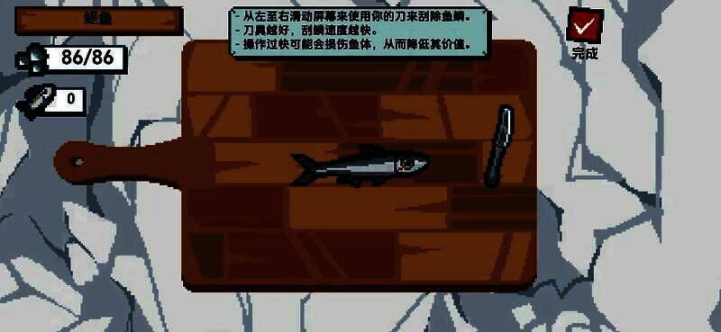 《刮鳞大师》打破传统模拟经营游戏套路,融合“钓鱼+处理+烹饪+服务”全流程操作。玩家需亲自操控鱼钩深海捕鱼,再进入船舱使用刮鳞刀细致处理食材——左右滑动精准控制力度与范围,完成度直接影响评分与奖励。这种微操互动极大增强了游戏代入感,让每一条鱼都充满成就感。