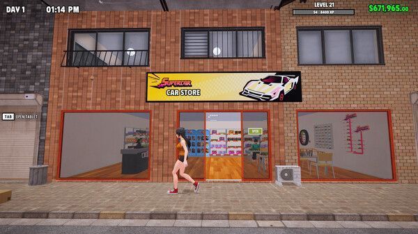 店内设有专属赛车平台,支持玩家亲自操控微型跑车参与竞速对决,或邀请顾客挑战AI对手。胜利可赢取技能卡与稀有零件,用于强化车辆加速、抓地力与极速表现,实现“经营+驾驶”双线成长。