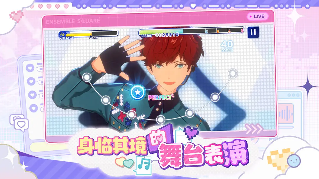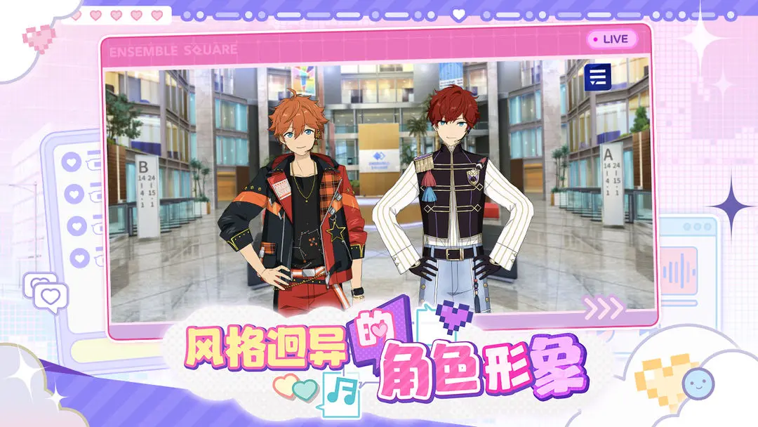 本作采用次世代Live2D融合3D骨骼动画技术,打造电影级MV视觉盛宴。每位角色动作均由专业舞者动捕录制,确保舞蹈流畅度与真实感。玩家可自定义C位站位、调整镜头角度,甚至设置专属打光方案,全方位展现偶像魅力。此外,主线剧情由日本知名脚本家执笔,新增“幕后日记”系统,深入刻画角色成长轨迹,增强情感代入。