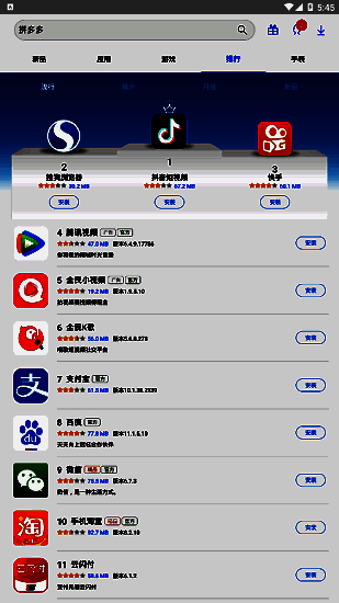 清晰的分类体系帮助用户根据兴趣或用途快速锁定目标应用。同时,排行榜依据真实下载量生成,不掺杂人为干预因素,真正反映当下流行趋势,让用户轻松发现当前最火的游戏或必备神器。