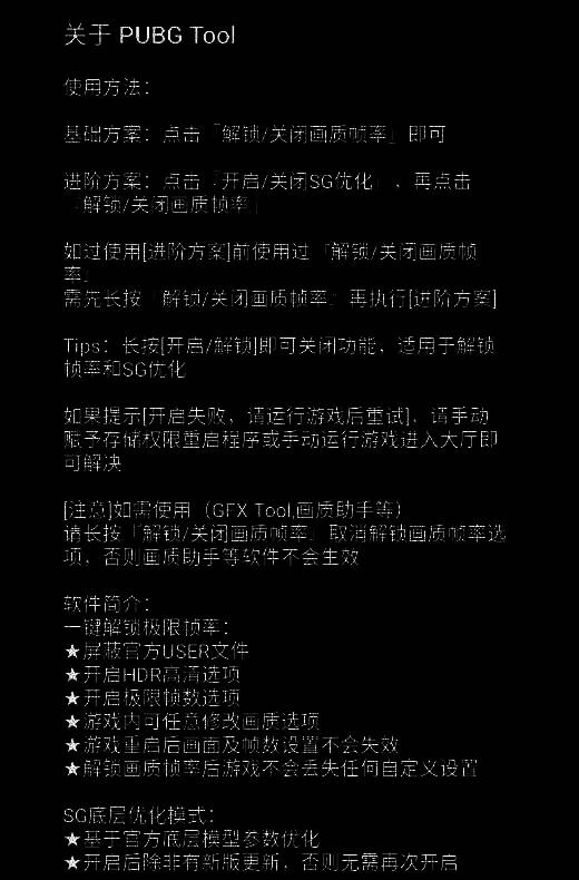 目前pubgtool已支持多个版本的PUBG手游,涵盖市面上主流设备型号。所有功能完全免费开放,界面设计清爽简洁,细节优化到位。无论是追求极致画质的硬核玩家,还是希望获得更流畅体验的休闲用户,都能从中受益。