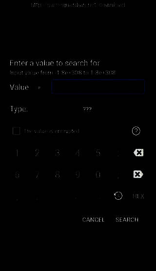 点击“搜索”获取初步结果,随后返回游戏进行少量操作使数值发生变化;