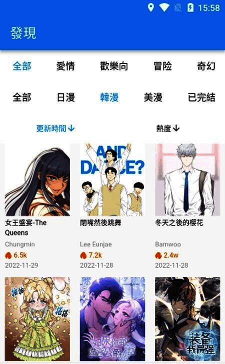 不论是国产精品、日漫经典,还是欧美独立作品,《拷贝漫画》都实现了国内外漫画同步上线。资源库庞大且分类清晰,几乎涵盖了你能想到的所有类型,真正做到“没有找不到的漫画”。