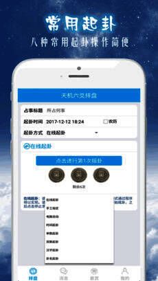 《天机六爻排盘》是一款专注于命理推算与运势预测的线上软件,融合了八字、紫微斗数、周易、六爻等多种传统命理学体系。用户可以通过该平台获取个性化的命运解析服务,涵盖事业财运、婚姻情感、健康潜能等多个方面,帮助人们更好地把握人生方向。