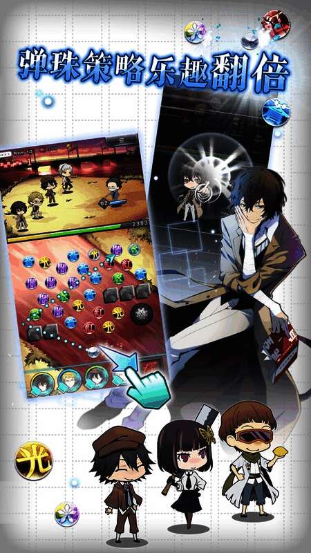 游戏在玩法上别出心裁,采用弹珠策略对战机制,玩家通过拖曳弹射的方式与敌人展开战斗,操作简单却不失策略性。每位角色拥有独特的文豪异能,如“月下兽”、“人间失格”、“罗生门”等,玩家可根据战斗需要自由释放技能,体验紧张刺激的对战乐趣。