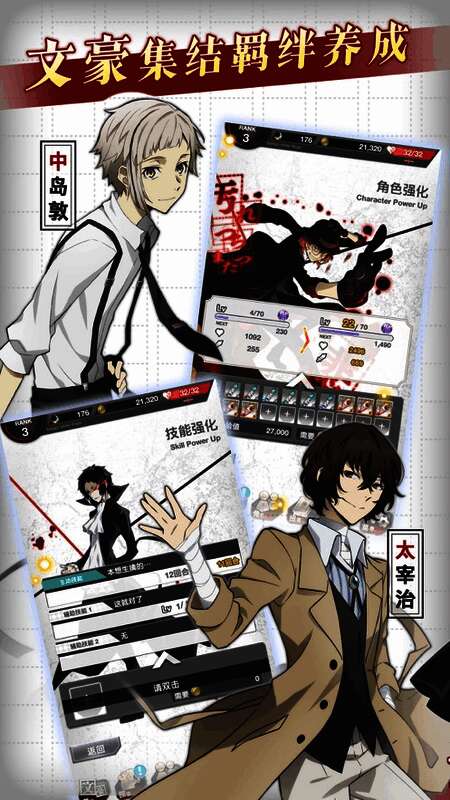 游戏中集结了《文豪野犬》中众多经典角色,如中岛敦、太宰治、芥川龙之介等,玩家可通过羁绊系统逐步解锁角色故事,提升队伍整体实力。通过培养角色之间的羁绊,打造属于自己的最强战斗小队,体验成长与协作的乐趣。