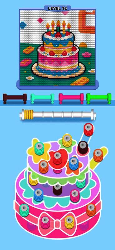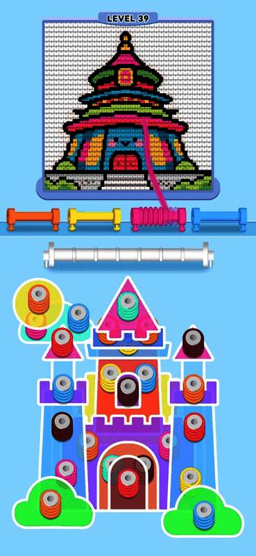 游戏将传统手工编织的灵感融入现代益智玩法之中,玩家不仅可以通过解谜推进关卡,还能自由发挥想象力,用毛线编织出花朵、城堡等创意作品。同时,类似“消消乐”的三同色消除机制也增加了游戏的趣味性,部分图案还会根据节日主题进行限定更新,提升新鲜感。