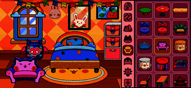 除了角色换装,你还可以为玩偶打造专属梦幻小屋。无论是童话般的云朵沙发与彩虹地毯卧室,还是霓虹灯牌与泡泡机营造的派对空间,所有家具都支持自由旋转与缩放,让你尽情发挥想象力与创造力。装修完成后,还能一键拍照定格温馨瞬间,记录属于自己的时尚大片。