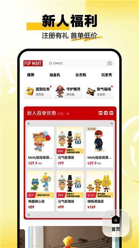除了购物功能,泡泡玛特还融入了丰富的互动元素,提升用户的使用乐趣。新用户注册即享多重福利,部分商品支持超低折扣,带来惊喜购物体验。平台独创“守护精灵”养成系统,用户可通过日常任务获取并培养专属萌宠,增加使用黏性。每日更新的任务体系完成后可获得积分奖励,积分可快速兑换心仪物品,极大增强了购物过程中的成就感与刺激感。