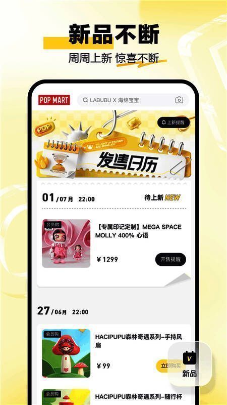泡泡玛特以“周周上新”为运营节奏,确保每周都有新鲜潮品上线,保持用户对新品的持续关注与期待。平台提供精准的商品上架与开售提醒功能,用户可对心仪盲盒设置开售闹钟,系统将提前推送通知,避免错过抢购时机。结合发售日历功能,用户可一站式掌握所有新品发布时间,合理规划购买计划,提升抢购成功率。