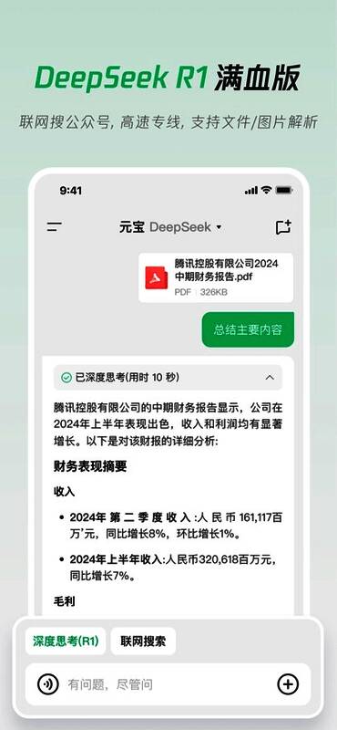腾讯元宝已全面支持登录并切换至DeepSeek-R1模型,用户可在iOS端及网页端自由使用该先进AI能力。相较于微信内嵌功能的限制,腾讯元宝在历史记录保存、持续对话管理方面表现更优,有效弥补了微信在长线交互中的短板。同时,这一组合打破了传统社交娱乐工具的边界,将信息探索、知识处理与生产力工具深度融合,展现出更强的实用性与延展性。
