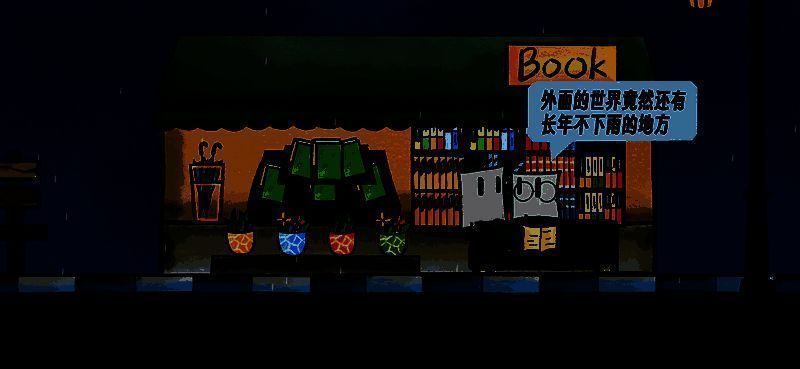 《雨天》不仅仅是一场物理层面的避雨挑战,更是一次心理层面的情绪转变之旅。起初,主角对这场永不停歇的雨充满抗拒与焦虑,但在一次次穿行于小镇的过程中,逐渐学会与雨共处,甚至开始欣赏雨中的宁静之美。这种态度的转变贯穿整个游戏,配合简洁却意味深长的对话气泡提示,引导玩家思考生活中的困境与接纳。