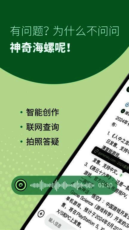 在信息爆炸的时代,如何快速获取知识、激发创作灵感、提升沟通效率?海螺问问苹果版应运而生,作为一款融合顶尖人工智能技术的互动问答软件,它不仅能够解答日常生活中的各类疑问,更成为创作者、学生、职场人士的得力助手。无论是写作卡壳、信息检索困难,还是需要高情商话术应对社交场景,海螺问问都能以自然流畅的对话方式,提供个性化、智能化的解决方案。