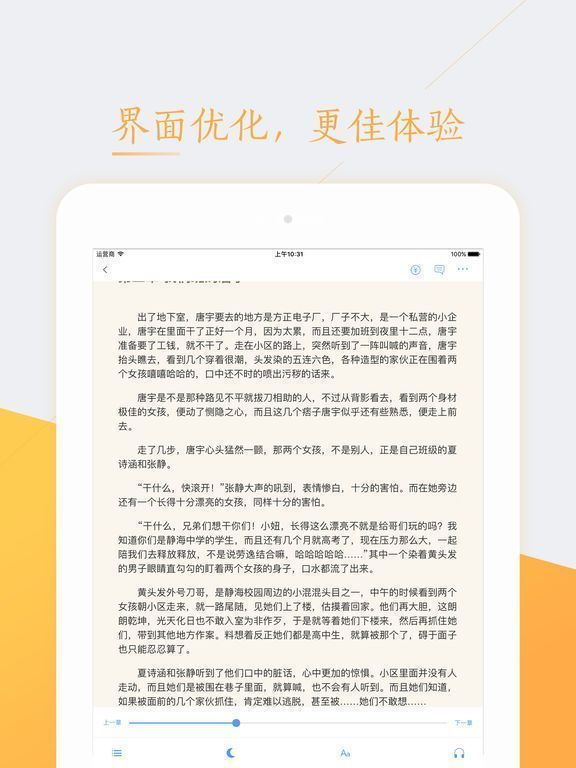 借助云端同步技术,用户的阅读进度、书签、笔记等数据可在多设备间无缝衔接,换设备也不怕丢失记录。软件还集成简体转繁体功能,方便港澳台及海外用户阅读。PDF文档阅读支持3D翻页与切边优化,带来媲美iBook的视觉享受。章节进度实时显示,支持一键清除,掌控感更强。