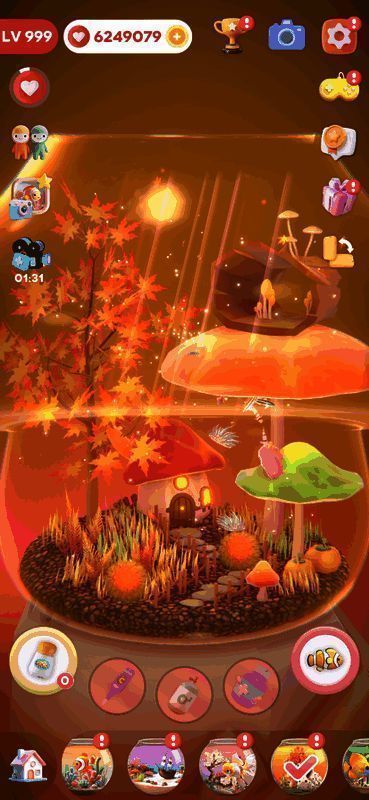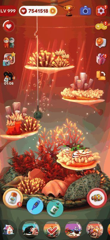 玩家不仅可以自由规划鱼缸的布局,还能通过获取资源逐步升级鱼缸等级,提升容量与生态稳定性。游戏内置海量装饰道具——从珊瑚礁、沉船遗迹到发光水草与动态背景,均可随心搭配,打造专属于你的个性化水族空间,真正实现“我的鱼缸我做主”。