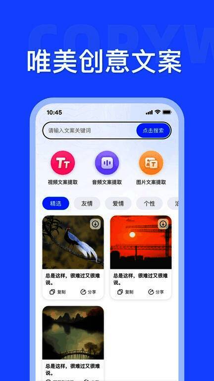 在内容创作日益盛行的当下,一款高效、便捷的素材获取工具显得尤为重要。素材大师苹果手机版应运而生,作为专为移动用户打造的高清素材资源平台,它凭借丰富的资源库和强大的编辑功能,迅速在短视频创作者、设计师及自媒体从业者中走红。无论是制作短视频、海报设计,还是社交媒体内容发布,用户都能通过这款应用轻松获取所需素材,大幅提升创作效率。