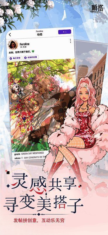 游戏采用极具辨识度的美术风格,融合了日漫风与现代时尚元素,营造出梦幻而高级的视觉氛围。每一套服装都经过精心设计,从裙摆的褶皱到配饰的光泽,细节拉满,带来沉浸式的审美享受。玩家不仅能自由搭配上千种服饰与妆容,还能调整角色的站姿、表情与拍摄角度,将每一次搭配成果定格为独一无二的时尚写真,真正实现“穿搭即艺术”的理念。